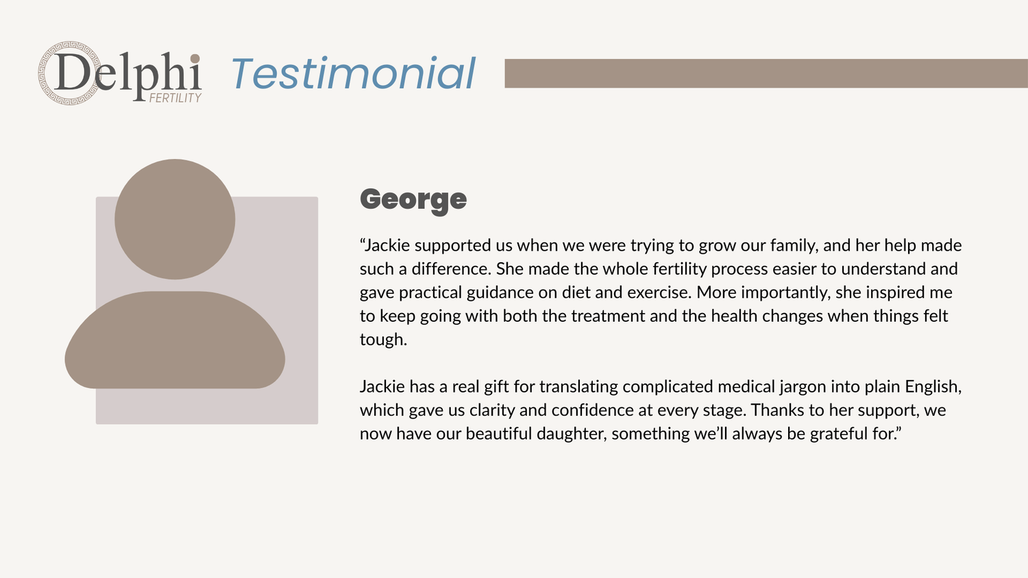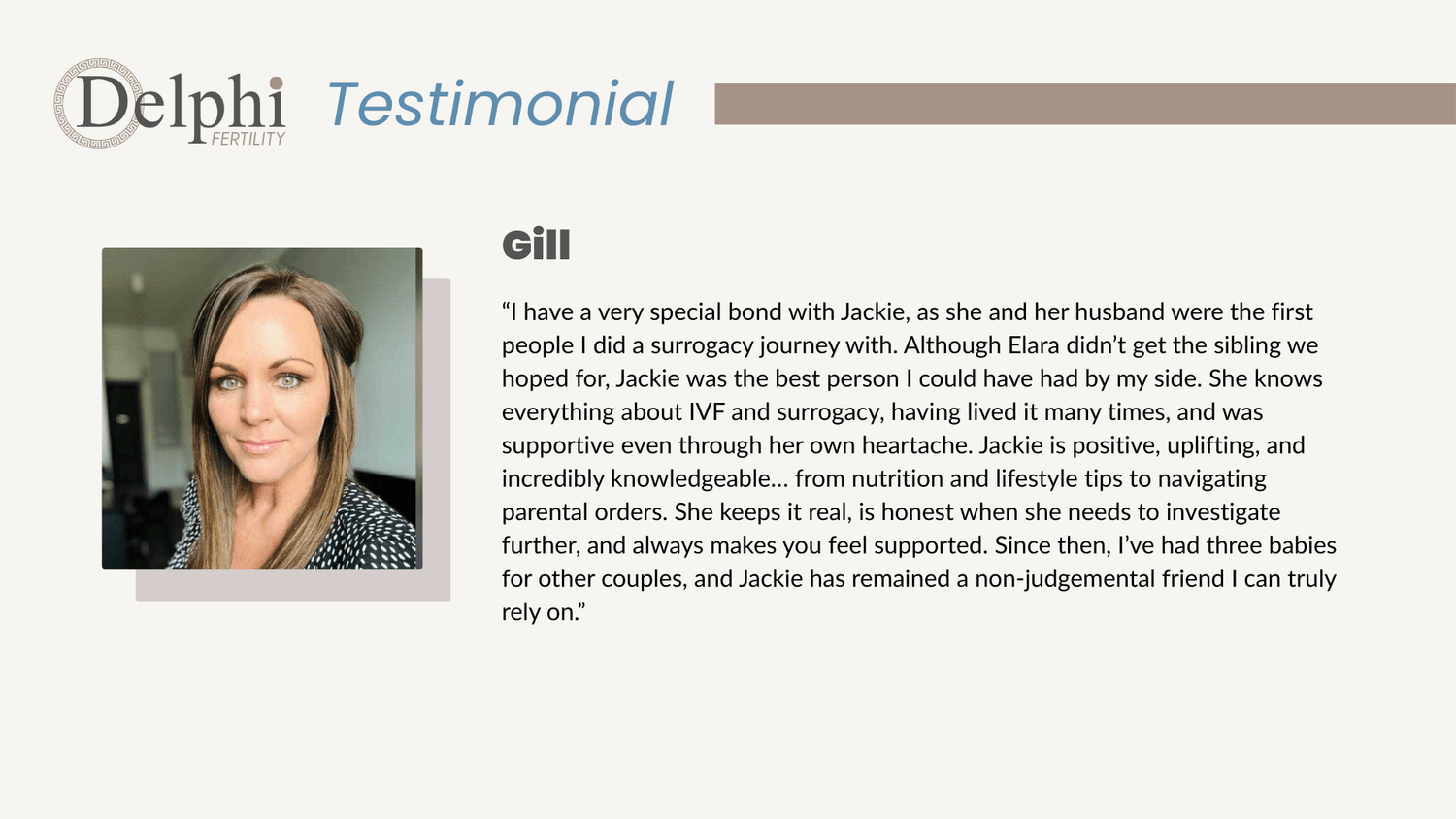 Delphi offers lived-experience guidance through every stage of surrogacy, from preparation and decision-making to managing relationships and logistics. Jackie has personally navigated five surrogate relationships, multiple clinics and all the emotion and bureaucracy that comes too. She brings empathy and strategy to every session.