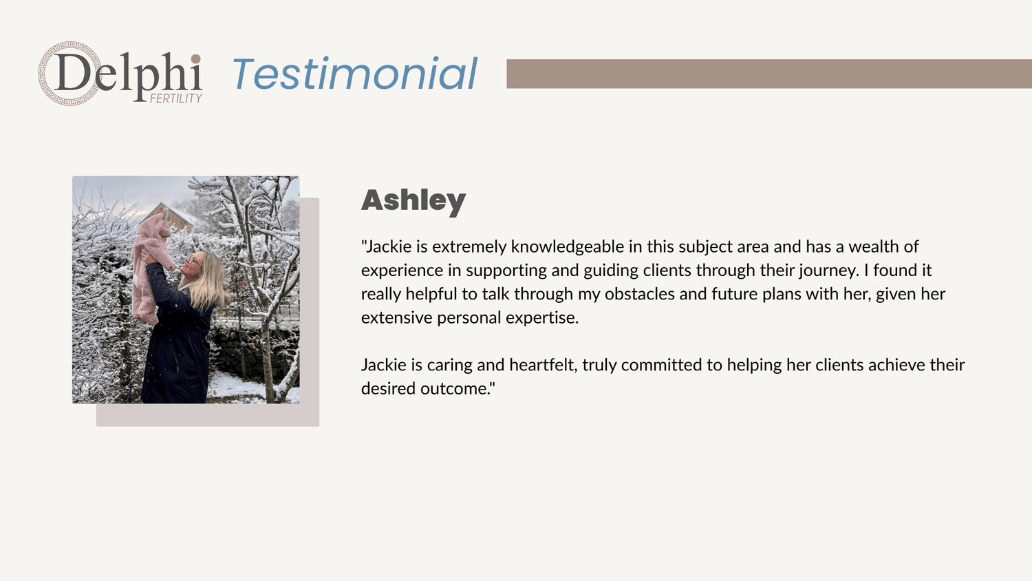 Yes. Jackie’s own journey includes miscarriage, IVF failure, and grief. Delphi offers compassionate, nonjudgmental support for those navigating loss, helping you process, heal, and move forward at your own pace.
